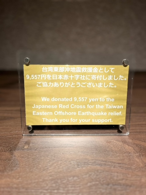 当ホテルでは、4月3日に発生した台湾東部沖地震救援金の募金箱を設置しておりました。